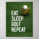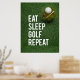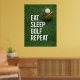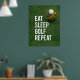 Add some humour and personality to your golf space with this Funny Golf Quotes Poster featuring the iconic "Eat Sleep Golf Repeat" slogan. Perfect for any golfer who lives by this motto, this poster will bring a smile to anyone who walks into the room. Whether you're decorating your man cave, office, or personal golf room, this piece of wall art is sure to strike a chord with fellow golf enthusiasts.