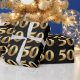 Elegant Stylish 50th birthday wrapping paper. Design features of 50 gold patter on black background.