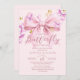 Gold A Little Butterfly Pink Bow Baby Shower Invitation
