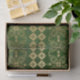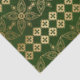 Gold Abstract Repeating Flowers on Green Decoupage Tissue Paper