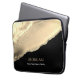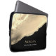 Gold Agate & Glitter, Name & Text Line, Black Laptop Sleeve