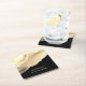 Gold Agate & Glitter, Name & Text Line, Black Square Paper Coaster