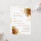 This wedding invitation features an AI created luxurious and artistic design with bold floral elements in rich golden hues. The top right and bottom left corners are adorned with rose illustrations in shades of gold and bronze, accented by fine line art detailing in metallic gold. The layout is clean and modern, allowing the opulent floral artwork to shine. The couple's names are presented in an elegant handwritten script, adding a romantic and personal touch. The combination of refined typography and rich decorative elements makes this invitation ideal for a glamourous and sophisticated wedding celebration.With your photo and a scannable qr code for your wedding website on the backside.