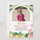 Gold Aloha Floral Flamingo Arch Photo 1st Birthday Invitation