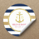 Gold Anchor Navy Stripes Nautical Wedding Favour Classic Round Sticker