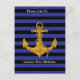 Gold Anchor on Blue Stripes with Custom Colour Postcard