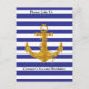 Gold Anchor with Blue Stripes Birthday Postcard