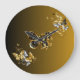 Gold and Black Butterfly Floral Art Golden Euphony Large Clock