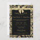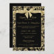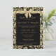 Gold and Black Damask with Bow Wedding Invitation