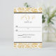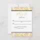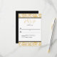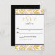 An Elegant Gold and Black Wedding Response Card designed with stylish gold coloured trim on a white background. The front text includes: The Reply By Date, and space for guests to insert their names. The reverse side is a black background. To personalise, simply insert your details into our easy template, replacing the sample text. Be sure to view the entire Gold and Black Elegant Style Wedding Collection.