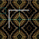 Elegant fabric design featuring a seamless pattern made of geometric shapes in faux gold shades on a black background.