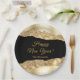 This elegant and glamourous Happy New Year plate features gold faux glitter glam tears on a black background. The text combines handwritten script and modern sans serif fonts for a classy and sophisticated look.