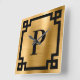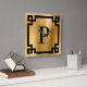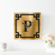 Gold and Black Greek Key Border Monogram Square Wall Clock