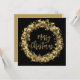 Gold stars, circles and dots on a black background surround the words "Merry Christmas" on the front and your greeting and names on the back. MATCHING items in our store.