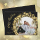 Gold circles, stars and dots wreath on a black background surround your favourite photo with your names and Merry Christmas greeting in chic lettering, a beautiful way to send holiday cheer. *USE A HORIZONTAL PHOTO for best results or crop your photo to a square before uploading. MORE items in our collection. Select Matte for heaviest paper and high definition for best print quality. Be sure to double-check your order before adding it to your cart as what you see on the screen is what will be printed. **The Live Design Service can help you with your photo layout if needed.
