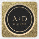 Minimalist, modern, elegant, glitter gold and black monogram wedding stickers for envelope seals, with custom initials and date.