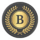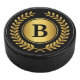 A personalised hockey puck with golden laurel wreath and custom monogram that you can edit with your desired initial or other text.