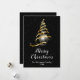 This elegant and chic holiday card can be personalised with your family name. The design features a gold and black ribbon Christmas tree with a bauble. The text combines handwritten script and modern sans serif fonts for a classy and sophisticated look. The falling snow, snowflakes and sparkles give a festive and magical touch.