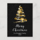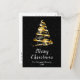 This elegant and chic holiday postcard can be personalised with your family name. The design features a gold and black ribbon Christmas tree with presents. The text combines handwritten script and modern sans serif fonts for a classy and sophisticated look. The falling snow, snowflakes and sparkles give a festive and magical touch.