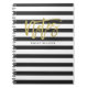 Show your style with a chic new notebook! This trendy notebook features black and white stripes, trendy faux gold foil lettering, and personalised text. Change the font style, move text, and more with the "Customise It" button.