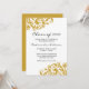 An elegant gold swirl decoration is featured on this cheap graduation announcement. Perfect for a high school graduation, college graduation or graduation party! Illustration by © Mujka Design