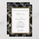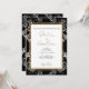 This Gold and Black Wedding Invitation features a white graphic design on a black background with double gold borders. The text includes: The Bride and Groom's Names, Wedding Date, Time, Location and Reception To Follow, on a white background. The reverse side text includes: RSVP and your Reply Details. To personalise, simply insert all your details into our easy template, replacing the sample text. Be sure to view the entire Gold and Black Wedding Collection for matching cards and accessories.