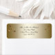 Gold and Black Wedding Return Address Label designed with falling gold coloured leaves on a gold coloured background with black text. The text includes: Your Return Address. To personalise, simply insert your details into our easy template, replacing the sample.