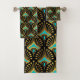 Gold and blue Art Deco pattern on black Bath Towel Set