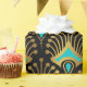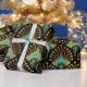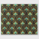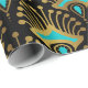 Gold and blue Art Deco pattern on black Wrapping Paper
