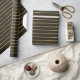 Elegant and stylish, yet simple design that has a rustic feel with warm earth-tone brown and faux gold foil. Horizontal stripes.