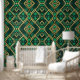 Gold and Emerald Argyle Pattern Peel and Stick Wallpaper