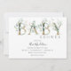 Baby Shower invitation features gold lettering and watercolor leaves of eucalyptus. Customise with your event details to celebrate the mum to be.