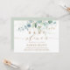 This baby shower invitation features painted watercolor eucalyptus, botanical green and gold glitter leaves with gold script.
