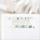 This return address label features painted watercolor eucalyptus, botanical green and gold glitter leaves with gold script.