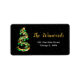 This elegant and chic address label features a gold and green ribbon Christmas tree with baubles. The text combines handwritten script and modern sans serif fonts for a classy and sophisticated look. The falling snow, snowflakes and sparkles give a festive and magical touch. This is perfect for Christmas and the holiday season.
