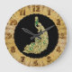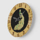 Gold and green peacock glimmering brightly large clock