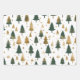 Gold And Green Pine Trees Christmas Wrapping Paper Sheet
