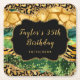 This gold and green safari themed agate birthday coaster features leopard spots, tiger stripes and snake scales. The text combines handwritten script and modern sans serif fonts for a classy and sophisticated look. The faux gold glitter accents and abstract animal print creates the perfect blend of chic and stylish.