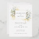 Elegant botanical greenery wedding invitation featuring watercolor foliage and gold foil leaves.