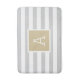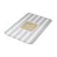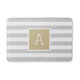 Custom monogrammed bath mat with a preppy stripe pattern in light grey, gold and white colours. Personalise it with your monogram initial in a square frame. Use the design tools to choose any background colours, edit the text fonts and colours and add your own photos to create a one of a kind design to match any bathroom decor.