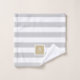 This custom made-to-order bath towel set has a preppy horizontal stripe pattern in light grey, gold and white. Personalise it with your monogram name and initial or other custom text. Use the design tools to choose any background colours, edit the text fonts and colours or upload your own photos to create a unique custom set of bath towels to match any bathroom decor. The set includes a coordinating bath towel, hand towel and wash cloth or select individual towel sizes as needed.