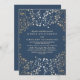 Gold and Navy Baby's Breath Floral Modern Wedding Invitation