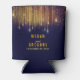 gold and navy koozie with string lights glitter for your wedding table decor, wedding favours or just for fun.