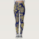 Gold and navy , Stylized Stencil Floral Leggings