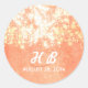 vintage and rustic peach wedding stickers - seals with gold foil string lights glitz and bride's and groom's initials.