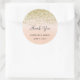 Thank you stickers with faux gold glitter design and ombre peach watercolor background.