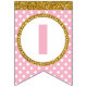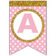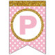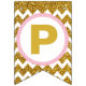 Gold and Pink Happy Birthday Bunting Flags, Custom