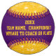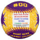 Gold and Purple Softball, Team PICTURE SOFTBALL or Delete the Photo to Expose the word "Softball." Personalize ONE custom softball at a time. See Instructions BELOW. Great, custom softball gifts for coaches, gifts for softball players and personalized softball team gifts. You or CALL DESIGNER LINDA: 239-949-9090 ET can CHANGE the COLORS of the Text and Background. You or I can also Delete any Design and Text and or the softball team picture to expose softball word. I can design over 1000+ other softball coach gifts, softball gifts for seniors or the whole softball team. Fully customizable and personalized softball to match your team colors.