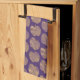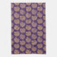 Kitchen towel with a pattern of golden textured apples on dark purple.
