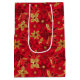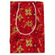 Gold and Red Christmas Poinsettia Flowers Medium Gift Bag